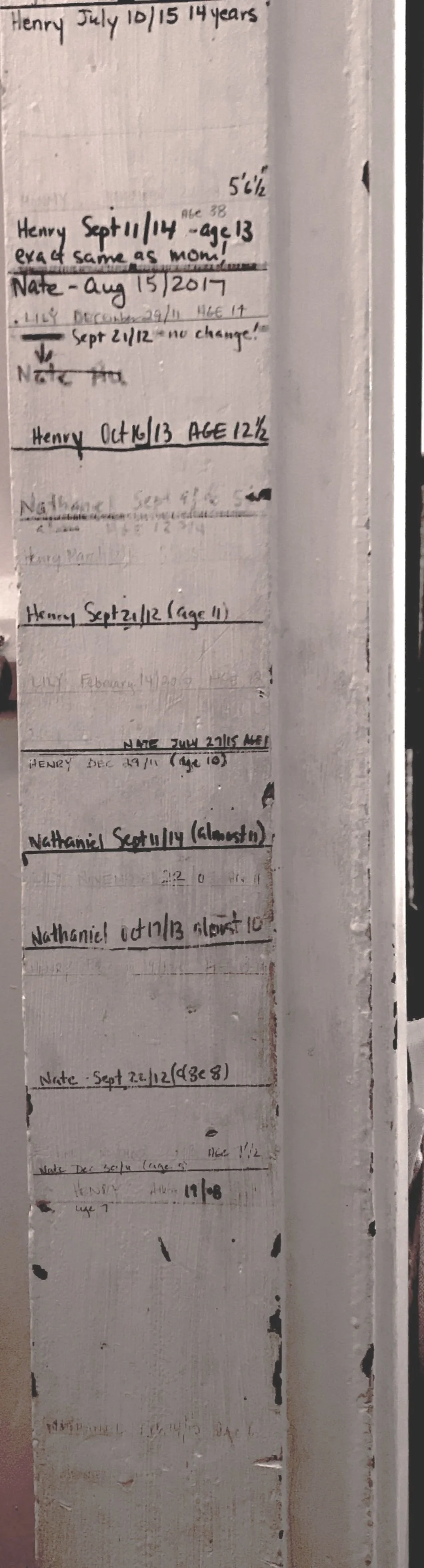 The practice of leaving behind material evidence of our existence and experience in the home is a phenomenon that has emerged in multiple forms and contexts from antiquity to the present. Hidden in and around the structures of private domestic spaces is material evidence of human activity, which can be read as usefully as any historical document or text. What I refer to as domestic marginalia is a type of annotation: initials, names, dates, and messages carved in surfaces, children’s heights recorded on door frames, hand or footprints in wet cement, secret messages behind wallpaper, and other types of evidence of a person’s presence in a domestic dwelling at a given time. These traces are not without intention, and they serve to transform ordinary dwellings into living archives of the past, and repositories of artifactual evidence of human habitation at a given place and time.